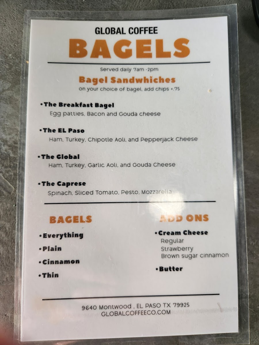 Welcome to Global Coffee Roasters, a delightful coffee shop nestled in El Paso, TX. This charming spot offers an inviting atmosphere, perfect for both casual meet-ups and remote work sessions. With a menu that highlights seasonal innovations, their Fall Drinks include comforting options like Hot Horchata and Iced Pumpkin Spice, catering to both traditional and adventurous palettes.